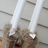 Innen már csak a ragasztás volt hátra. Ragasztópisztollyal rögzítettem a tölcséreket, körben haladva, 3 sorban ügyelve arra, hogy ne gyűrjem sehol a papírt. Kapott még zsákvászonvirágokat, kevés raffiát, csipkerongyot dísznek és kész is.