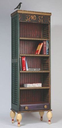 Végül pedig a kedvencem. Zsalugáterekből és bowlingbábukból polc. Imádom.