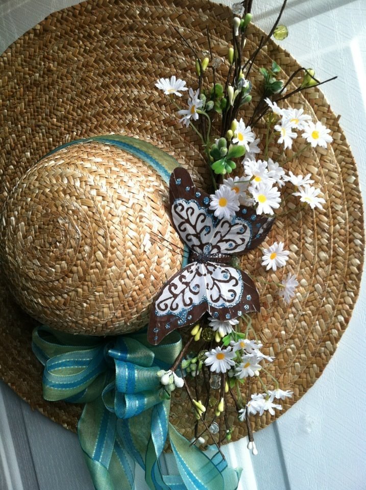 Koszorúalap helyett használhatsz régi szalmakalapot is, tök jó: