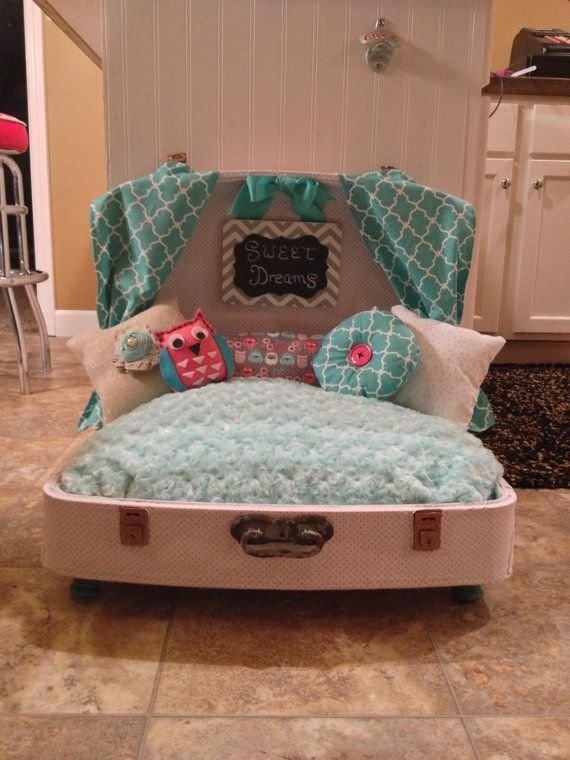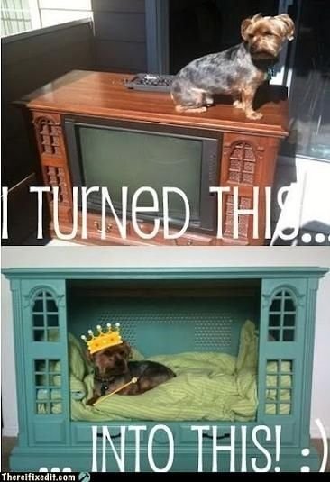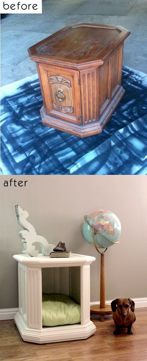Végül persze a kedvenceim az igazán elvetemült kutyaimádóknak. Pazar fekhelyek régi kisasztalból:
